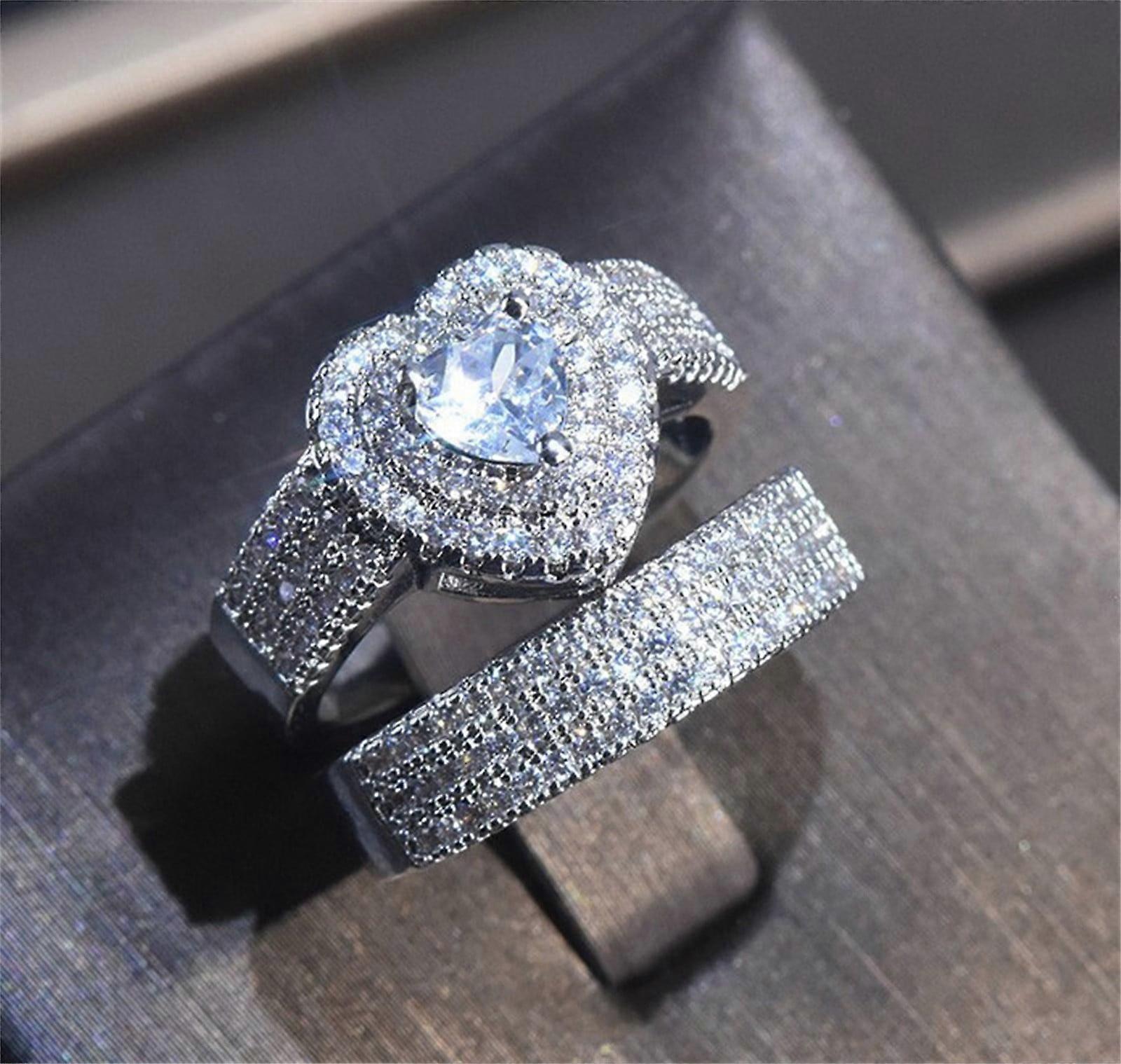 Valentines Day Gifts Savings Deals! WJSXC 2pc Women Pear-shaped Drop-shaped Ring, Party Ladies Wedding Bridal Ring Gift 6-10 C