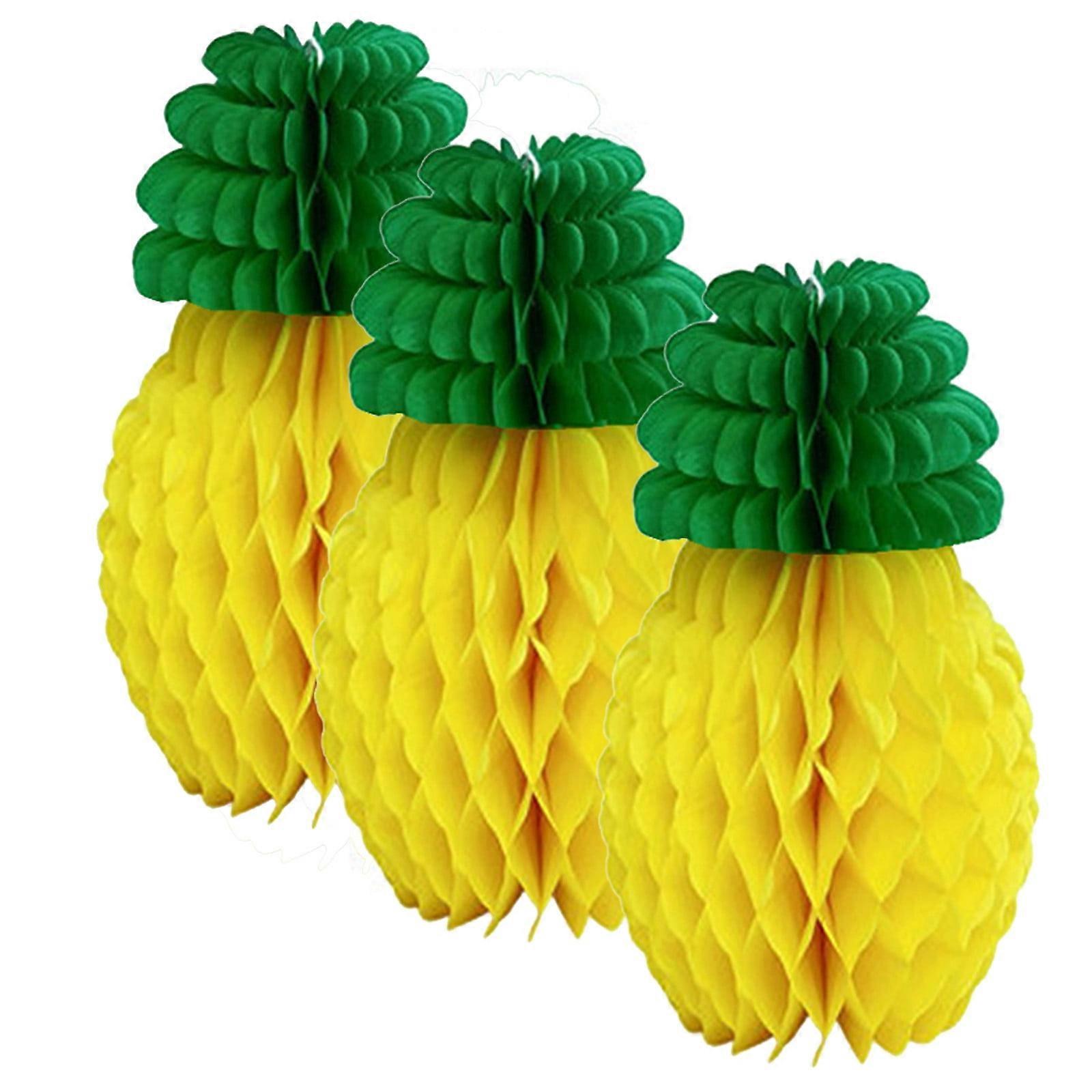 Pineapple Shaped Paper Decoration, Honeycomb Ball Lantern 35cm (Large) x3 - Summer Party Supplies, Compatible with Pineapple Themes