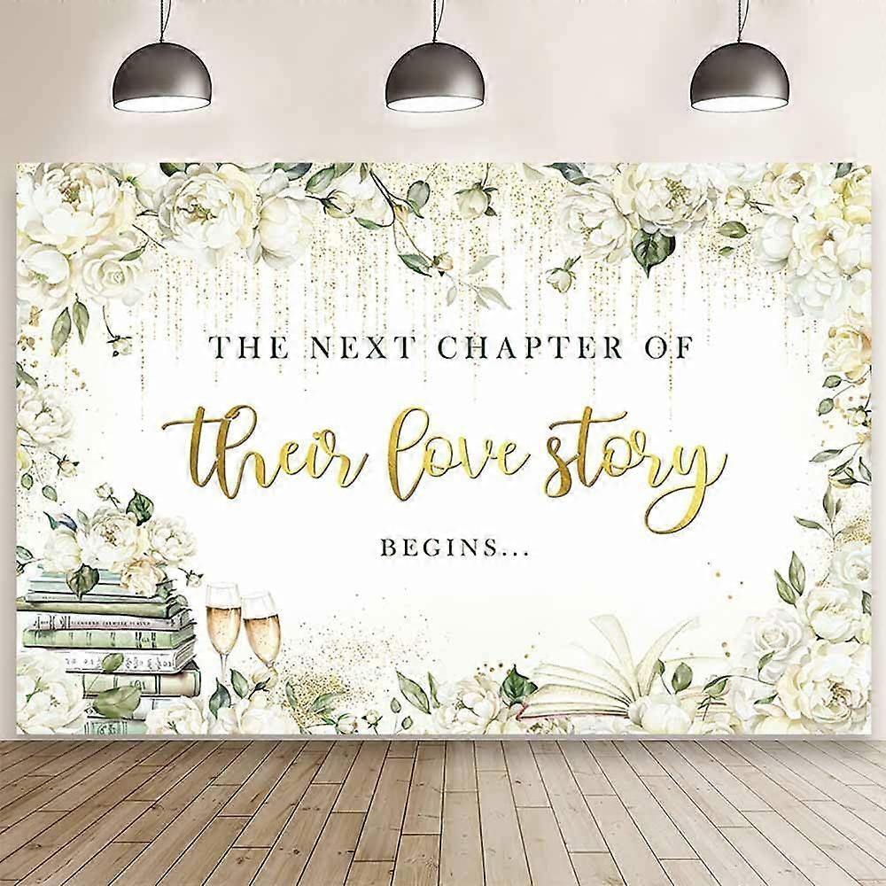White Floral Wedding Backdrop, The Next Chapter of Their Love Story Begins, Photography Background, Flower Book, Bridal Shower Decor, Champagne