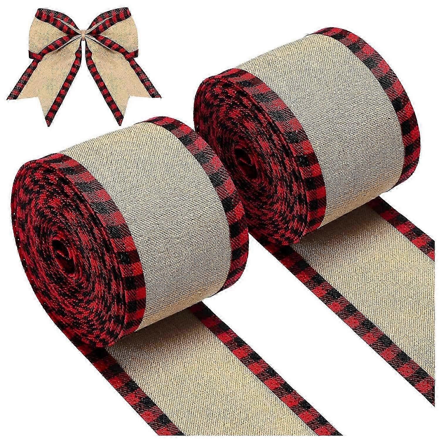 Wired Edge Ribbons Christmas Burlap Fabric Craft Ribbon Wrapping Ribbon with Checkered Edge RedHemp Color SZRH