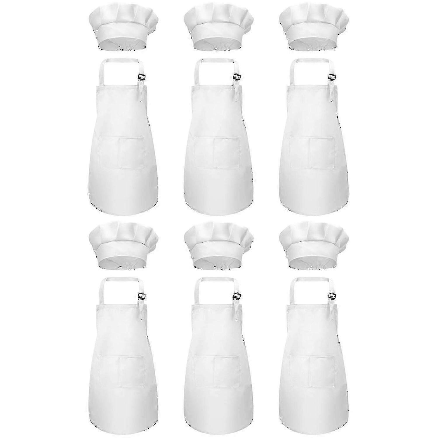 12-piece Apron And Chef Hat Set, Adjustable Children's Apron With Pockets (white, Suitable For 2-6 SZRH