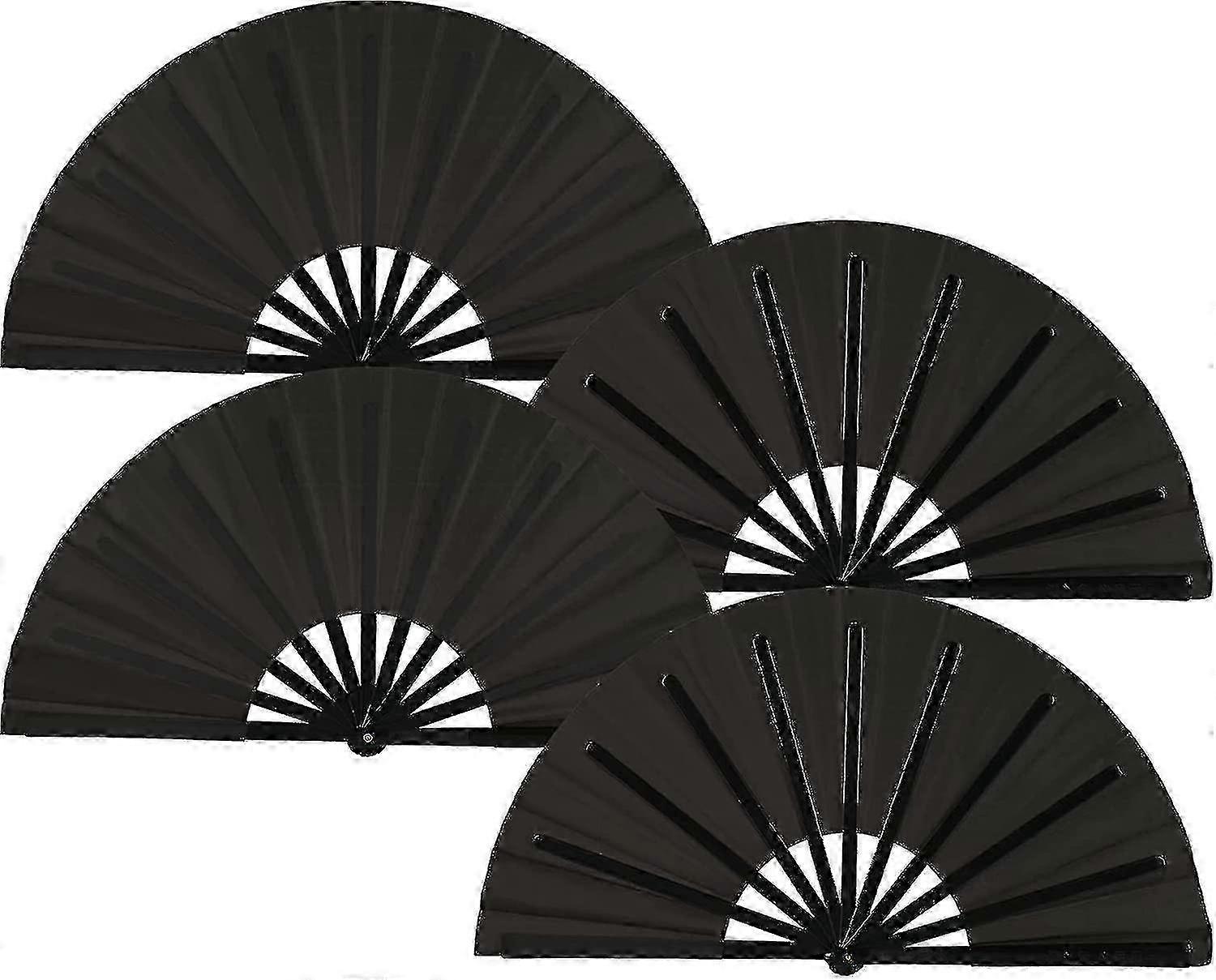 4 Pieces Black Large Folding Hand Fan Nylon Cloth Chinese Kung Fu Handheld Fan Plastic Hand Fan Foldable Hand Fan Large Handheld SZRH