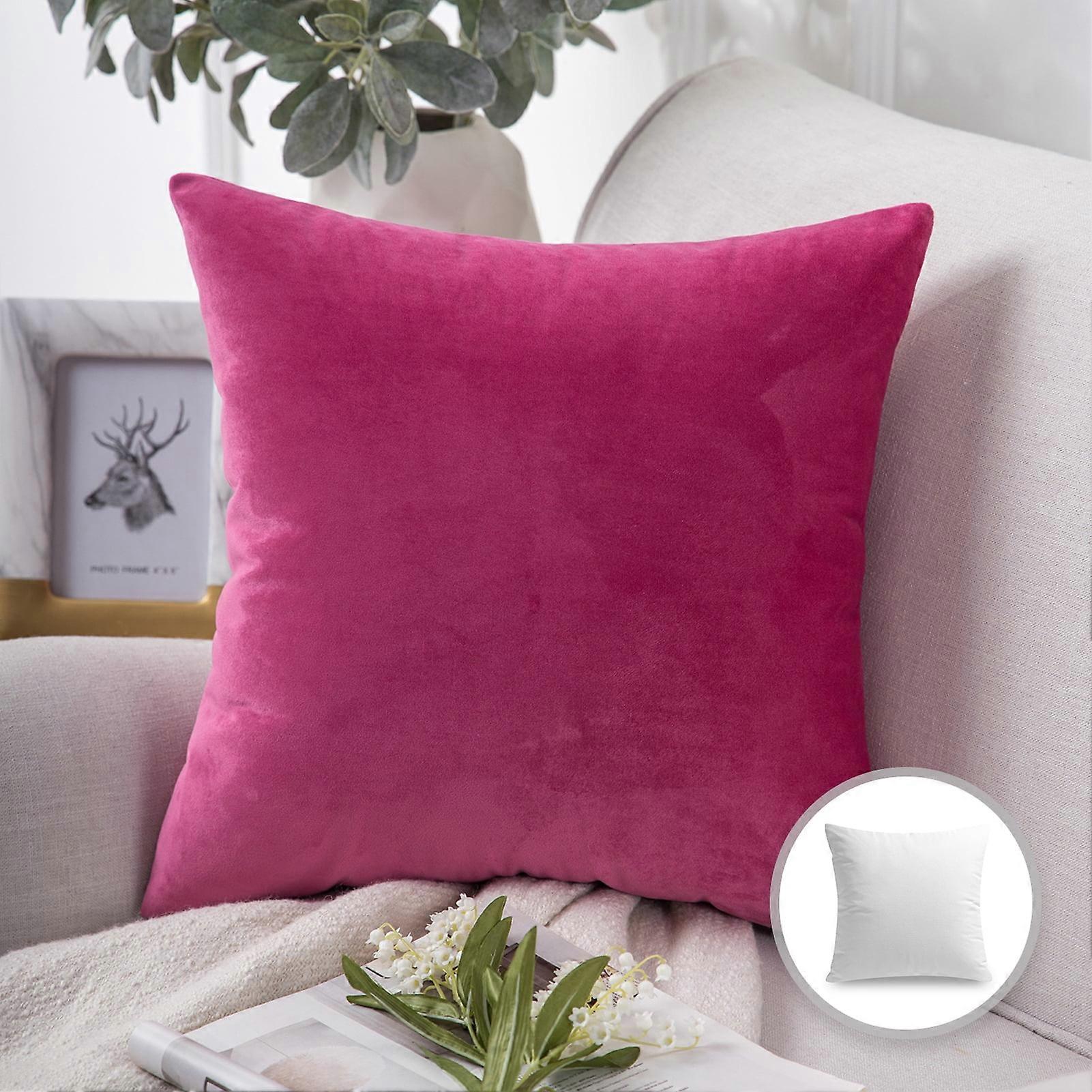 Phantoscope Soft Silky Velvet Series Decorative Throw Pillow, 22" x 22", Pink, 1 Pack