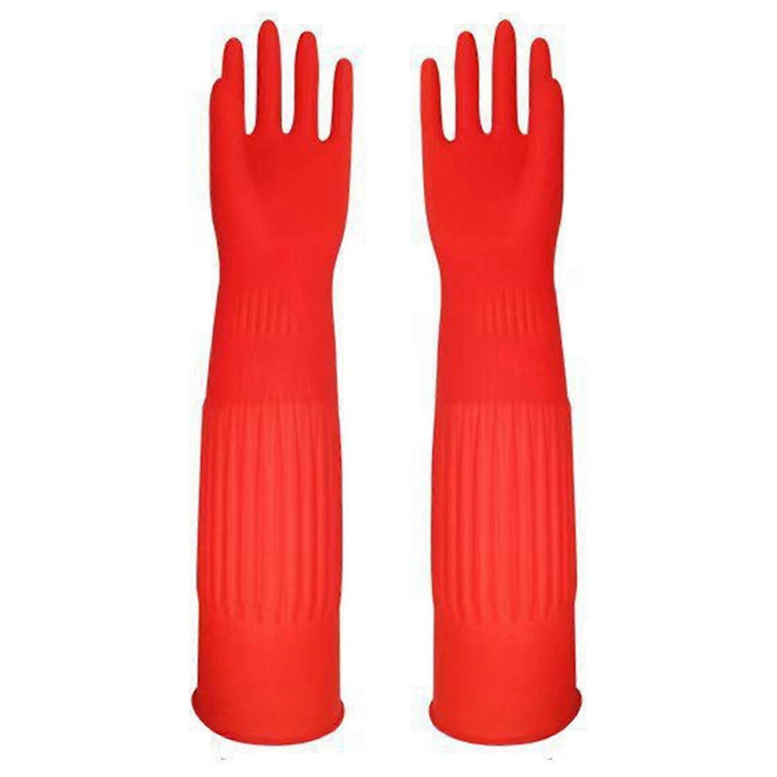 RnemiTe-amo Rubber Dishwashing Gloves, Latex-Free, Reusable for Kitchen Cleaning, Long Durable Gloves Compatible with Household Use, Red (L)