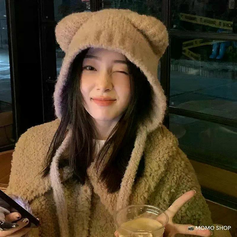Little Bear Ear Hat Korean Version Ins Cute Knitted Rope Hat Autumn and Winter Warm Ear Protection Knitted Hat