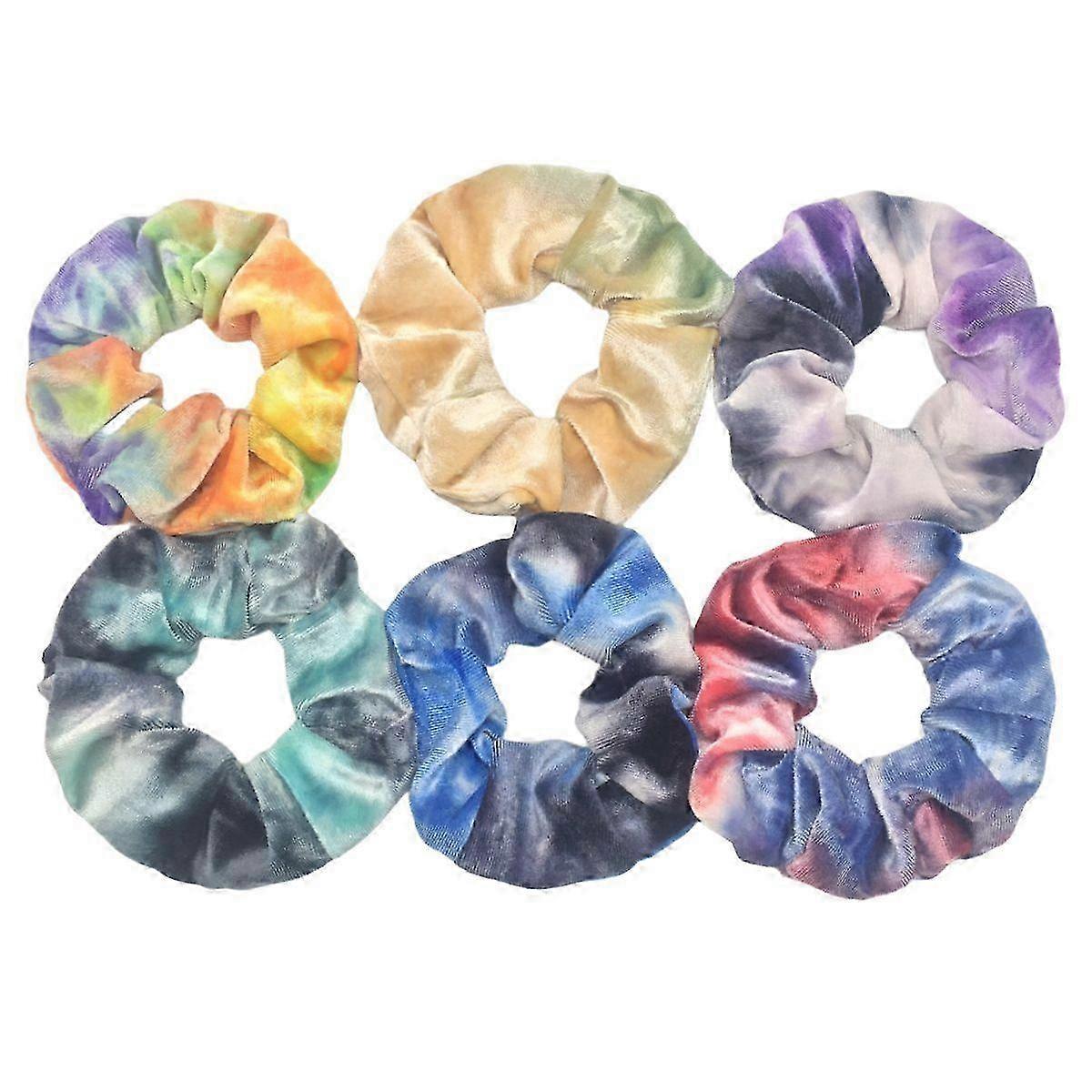10/6 Women's Velvet Scrunchies Solid Leopard and Tie Dye Pattern Elastic Hair Bands Accessories for