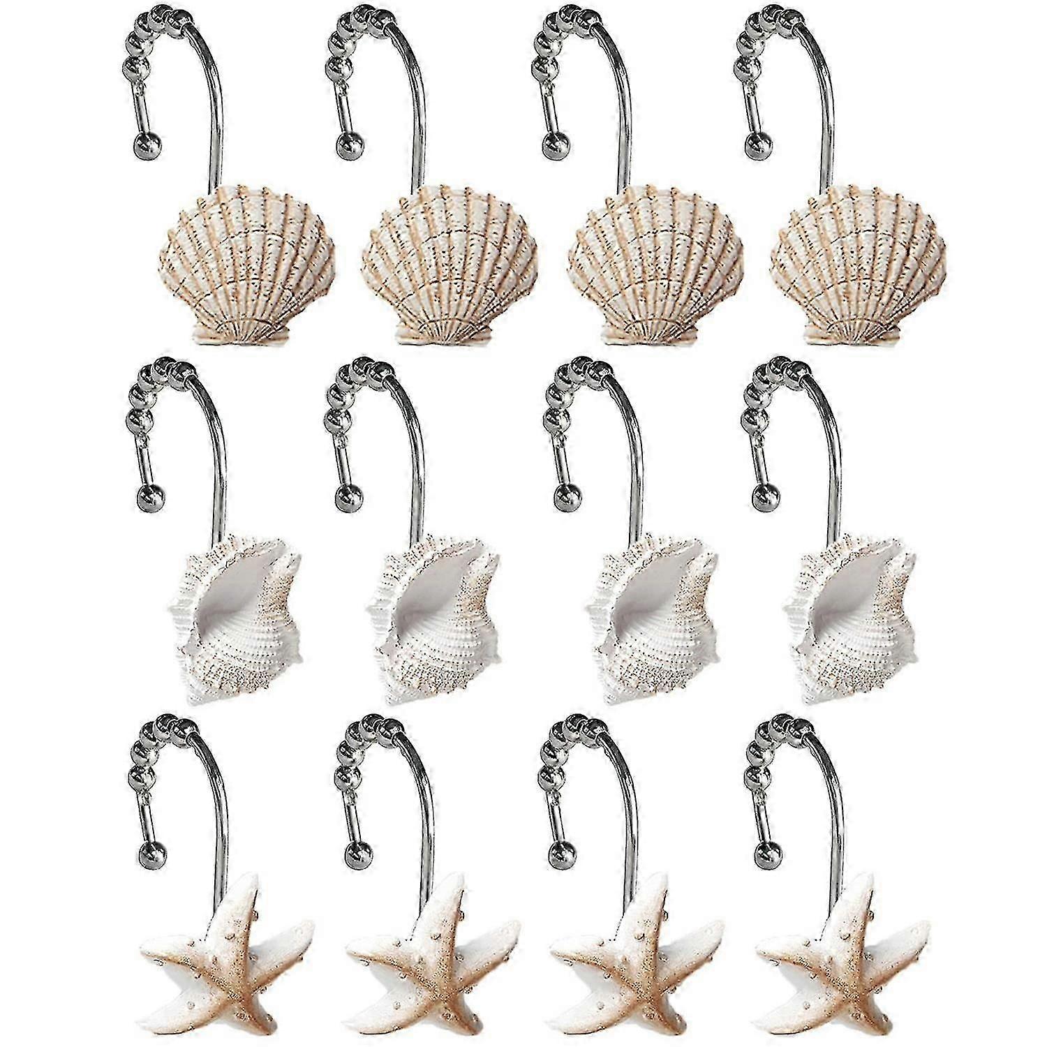 1Shower Curtain Hooks Creative Shape Realistic Looking Punch Free Resin Shell Conch Ocean Themed Sho 888