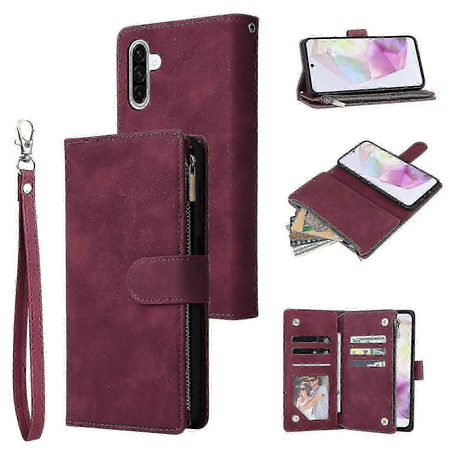 For Samsung Galaxy A26 5G Case Zipper Wallet Multiple Card Slots Leather Phone Cover-Wine Red 888
