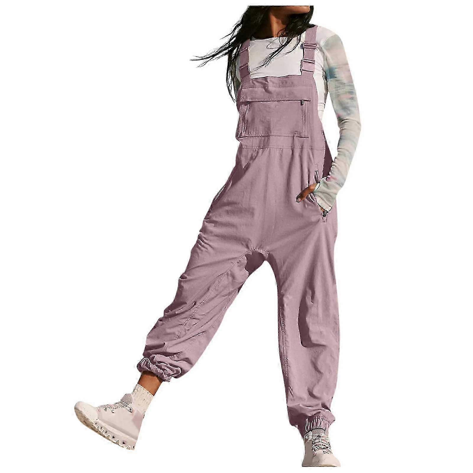 Damen Latzhose in Oversize Rosa, eine beil盲ufige Tr盲gerhose f眉r den Sommer, ein bequemer Baggy Jumpsuit Overall in Einfarbig