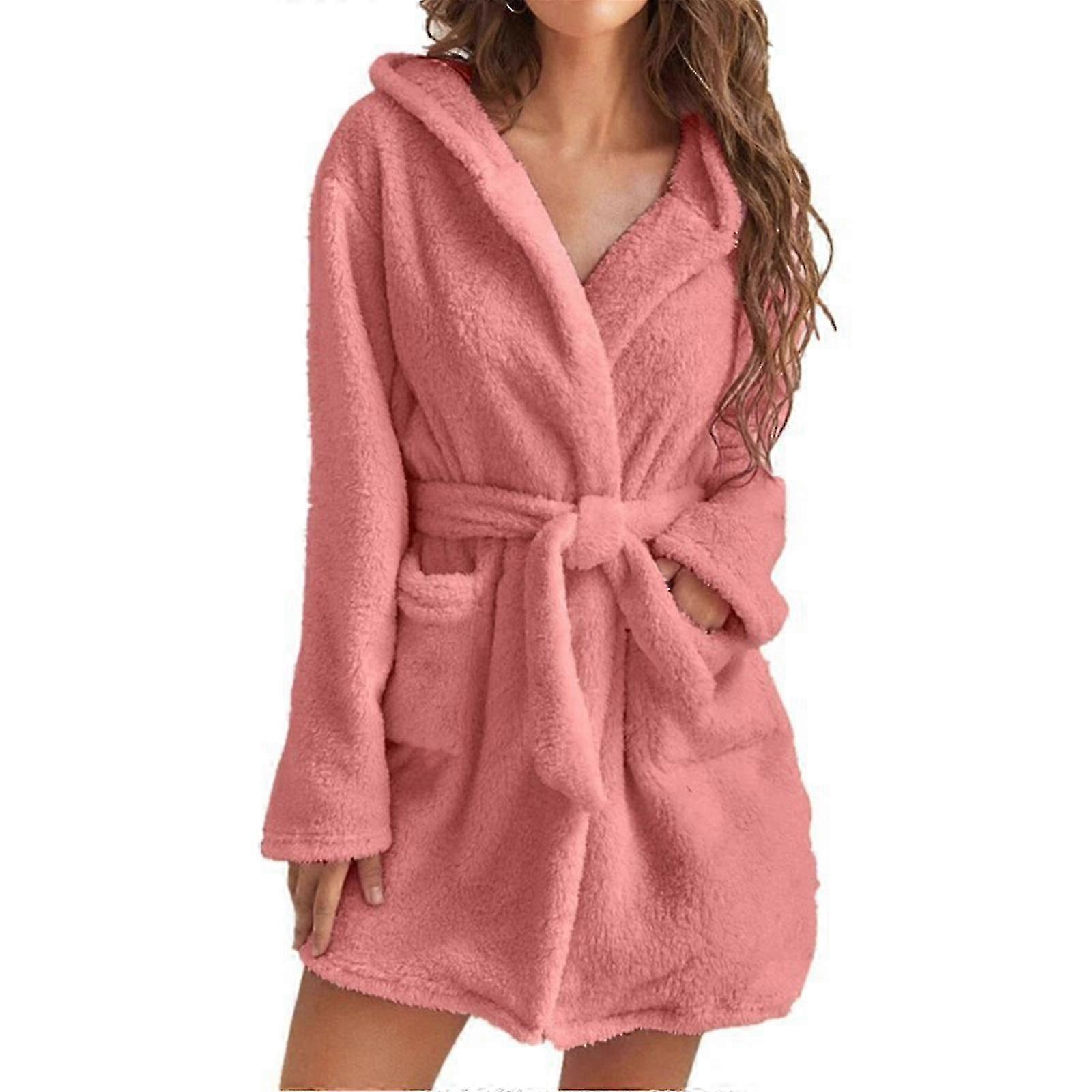 Plush Hooded Robes for Women,Soft Fuzzy Fleece Robe Thicker Warm Bathrobes with Pockets Winter Sleepwear Loungewear Pink XXXXXL