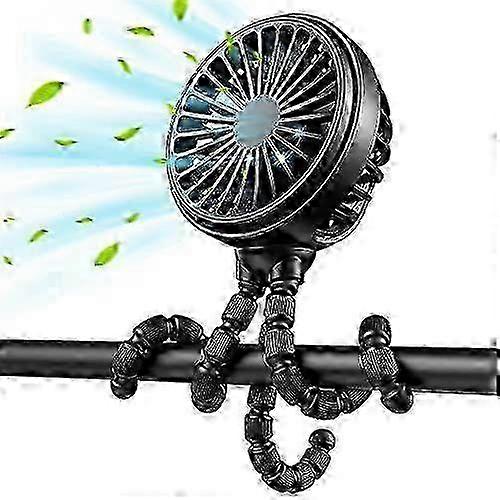 Upgraded Flexible TripodMade of high quality metal and silicone cover, the tripod can be bent to any angle you want. You can stand it on the desktop, wrap it on stroller, hang it on your tent, ect.Best choice for you in this hot summer. 3-Speed Adjustable & 360RotatableUSB fan offers 3 levels speed and 360 horizontal rotations so you can direct the wind at an appropriate speed to any direction you need. Improved Cool & Quiet AirflowSpecially designed to keep your baby cool without an irritating noise, our stroller fan has a powerful 3000RPM turbo motor, mighty yet quiet for baby stroller, bed, office, home. Now is time to invest in a decent portable fan that will keep you cool all summer long. Portable & Rechargeable DesignBuilt-in 1200mAh rechargeable battery,our fan can last 3 to 8 hours on a single charge. Simply charge it through a USB C port from a power bank, pc, hub, outlet, etc. This flexible tripod fan is compact and lightweight, give you an impressive cooling effect anytime and anywhere. What You Get from Us1 x USB fan, 1 x Type C charging cable, 1 x Use Manual.What's more, we provide 12 months replacement service and lifetime friendly after-sales service. Any problem, contact us at anytime, we will always be there for you. Note: Due to the light and screen setting difference, the item's color may be slightly different from the pictures. Please allow slight dimension difference due to different manual measurement. Sold by-YJL official store