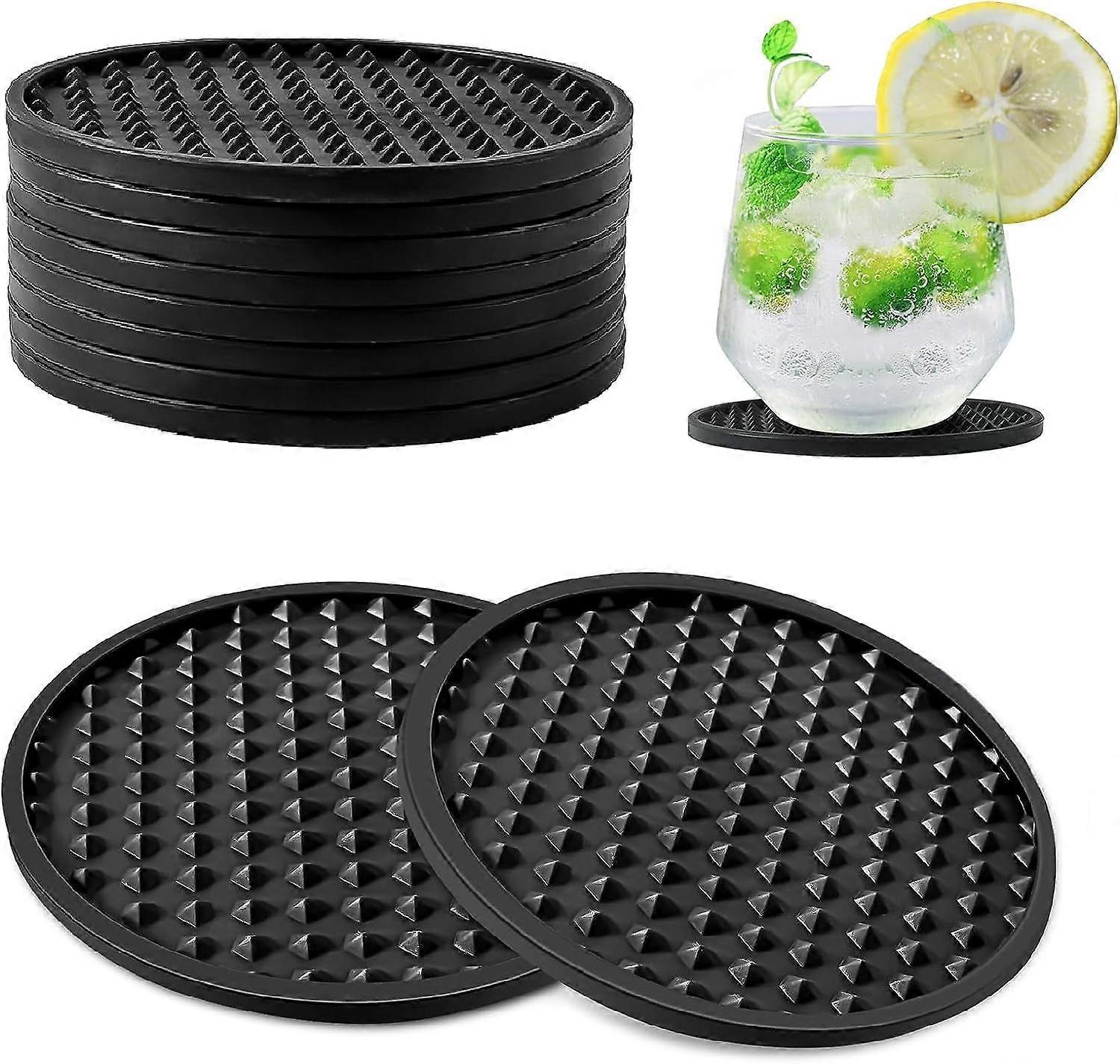 LINLIN 8 PCS Black Silicone Coasters, 0.2inch Thick Round Drink Pads, Anti-Skid Design for Mugs, Coffee, Beer - Compatible with Standard Cup Bases