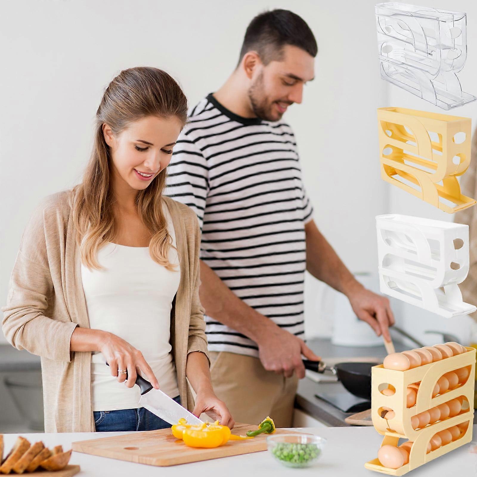 Jacenvly 4-Layer Slide Style Egg Box Storage Rack, Compatible with Refrigerator Side, Anti-Drop Egg Collection Organizer & Wall Decor