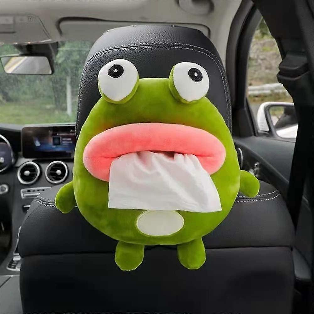 Cartoon Car Plush Animals Tissue Box Cute Napkin Tissue Paper Holder Creative Car Armrest Tissue Case for Home Bathroom Car (Green Frog)