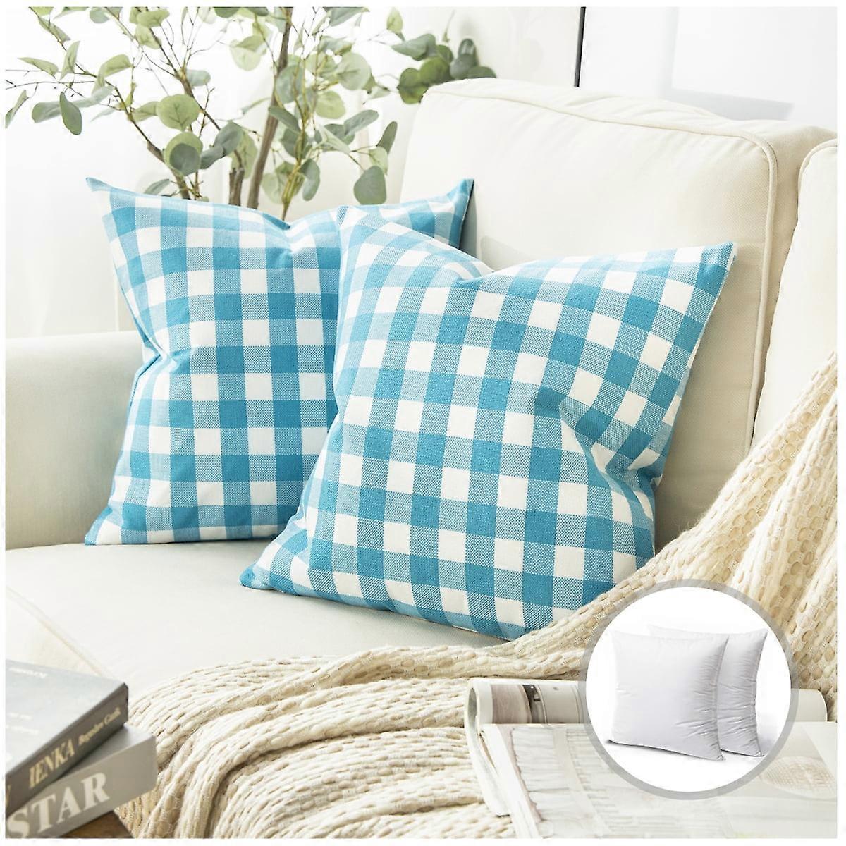 Phantoscope Christmas holiday Decorative Throw Pillow Set, Classic Checkers Series Covers with inserts, 18" x 18", Sky Blue, 2 Pack