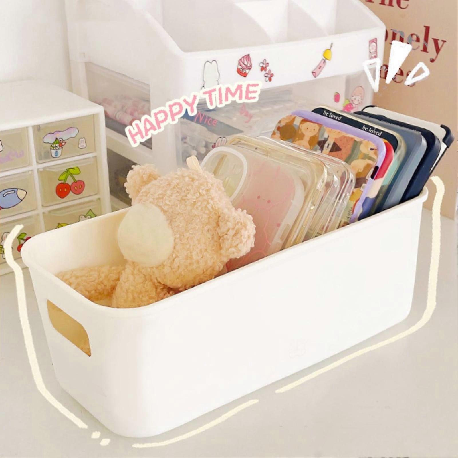 SUSUchens Dormitory Student Desktop Phone Case Organizer Cosmetic Eyelash Organizer Basket Plastic Snacks Storage Bins Card Holder White