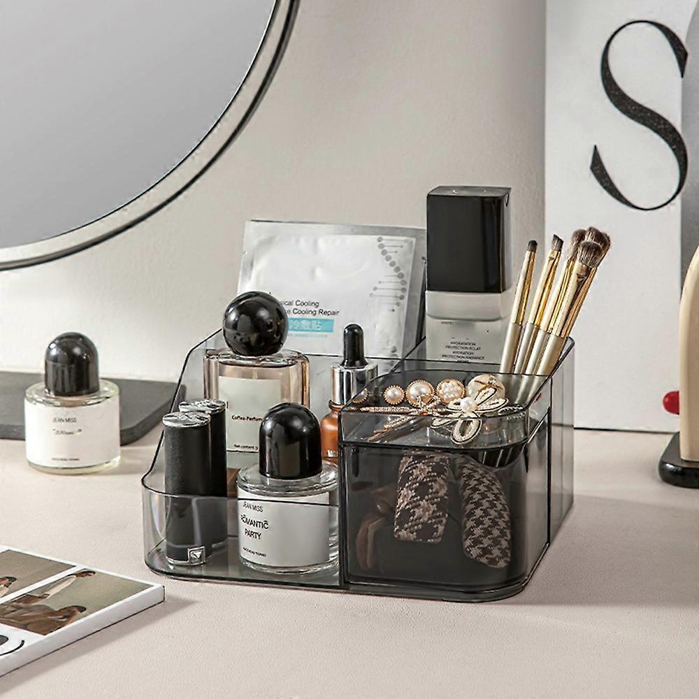 Y001 Makeup Organizer Vanity Skincare Storage Transparent PET Display Shelf with Rotating Drawer