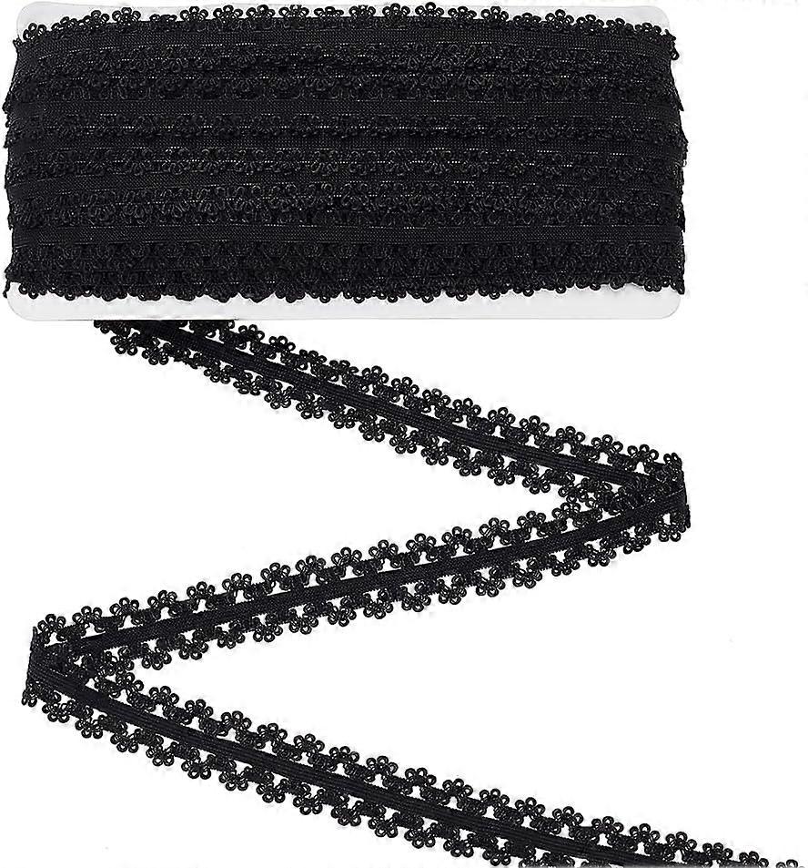 20 Yards 3/4" Black Elastic Lace Trim, Double Crown Edged Stretch Ribbon for DIY Sewing, Crafts, Garment Embellishments, Gift Wrapping
