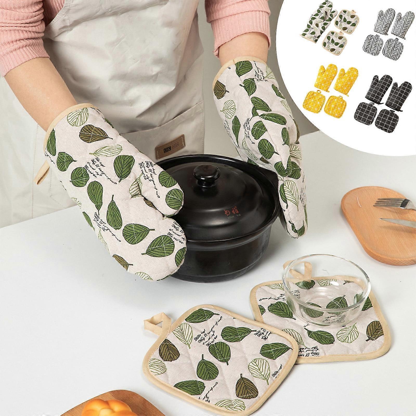 Jacenvly Halloween Kitchen Microwave Thermal Insulation Gloves, Thickened Plaid Heat Protective Baking Cotton Linen Oven Gloves Compatible with Fall