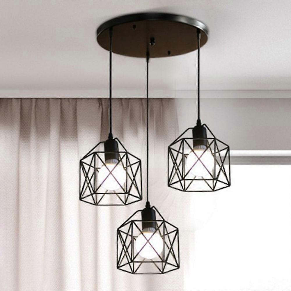 Pendant Light Round Ceiling Plate with 3 Lighting Metal Cage Lampshade (E27 Lamp Cap, without Bulb)