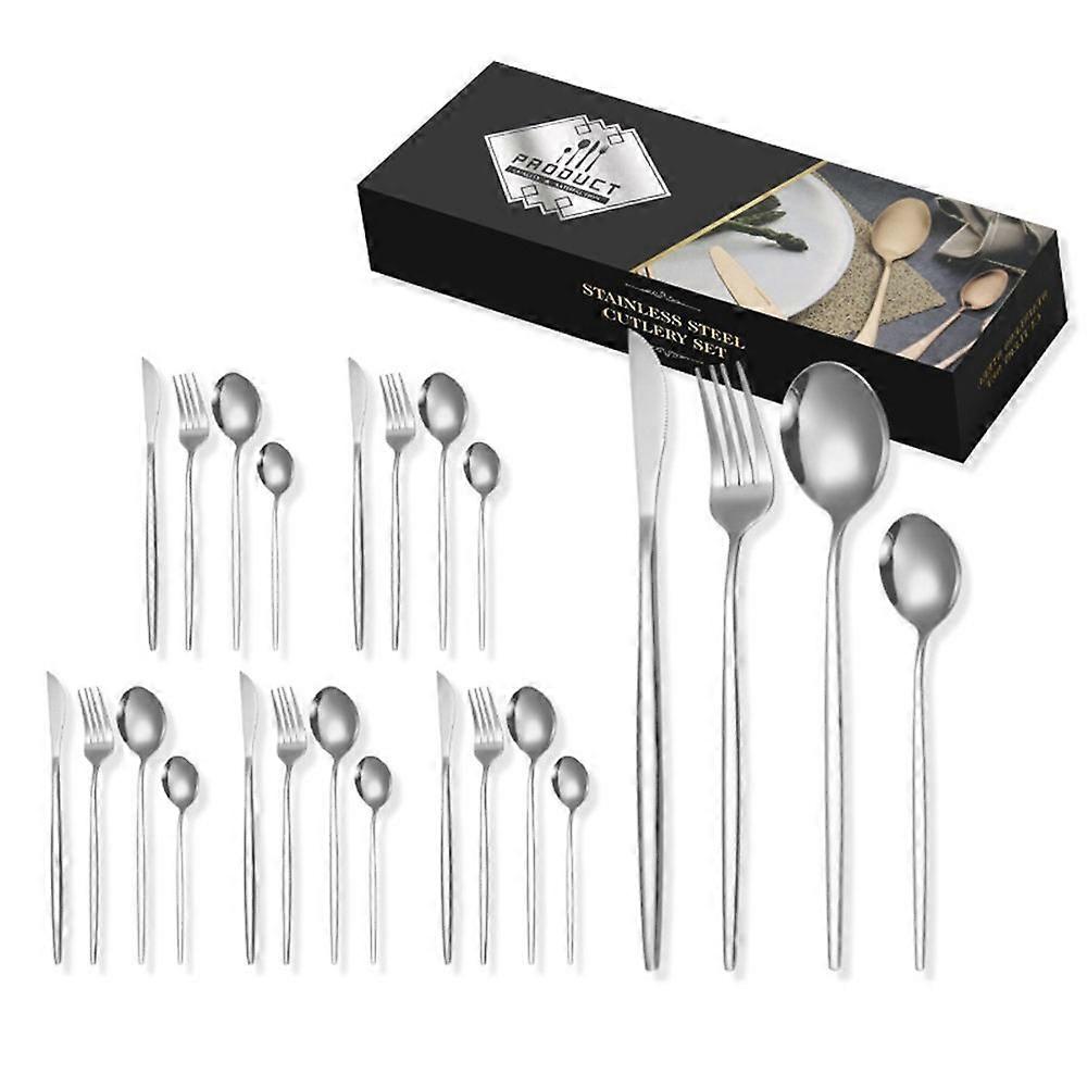 24Pcs Stainless Steel Cutlery Set with Knife Fork Spoon for 6 People Dishwasher Safe Dining Flatware (BPA Free, No FDA)