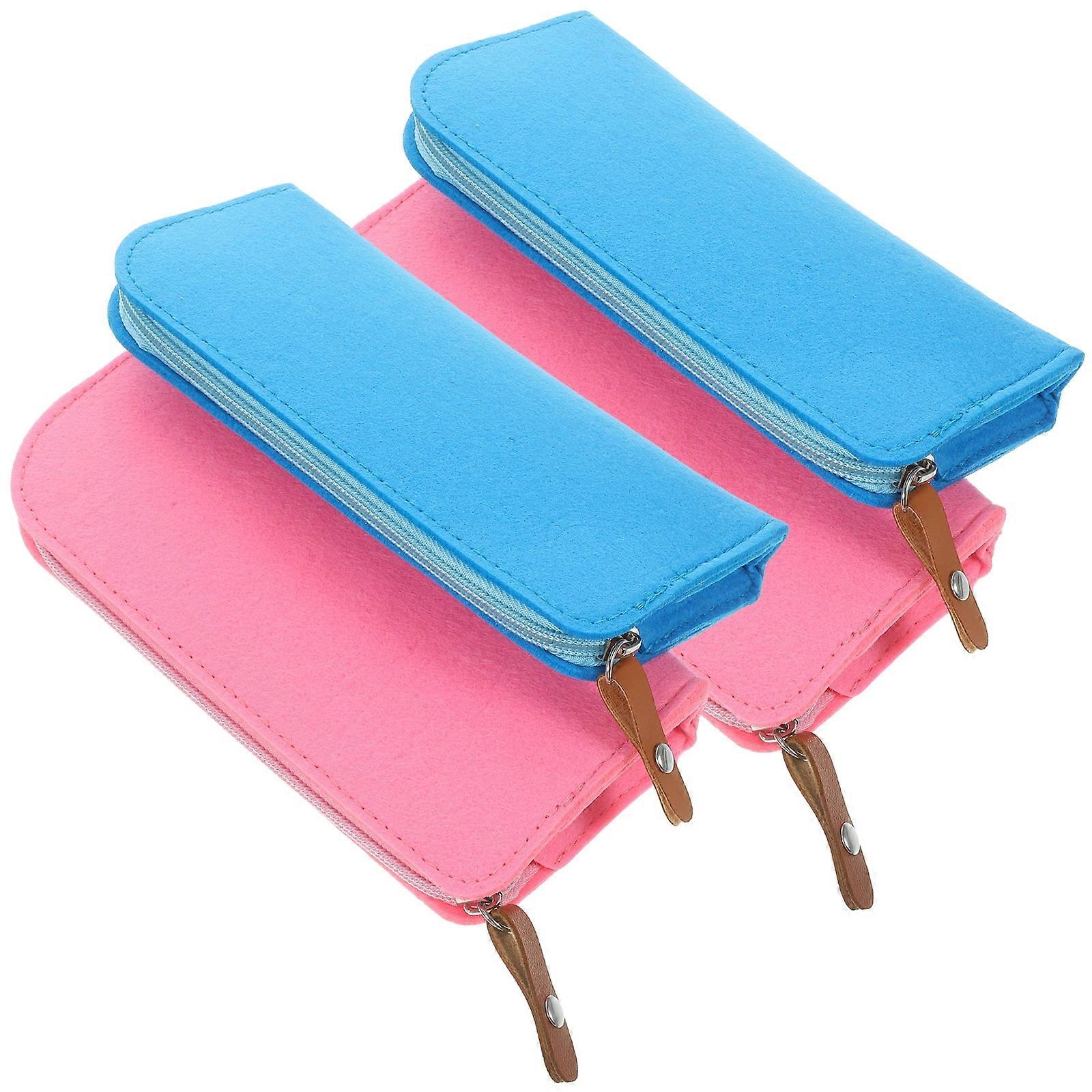 4 Pcs Felt Pencil Case Multi-function Stationery Storage Bags High Capacity Zippered Makeup Cosmetic Student