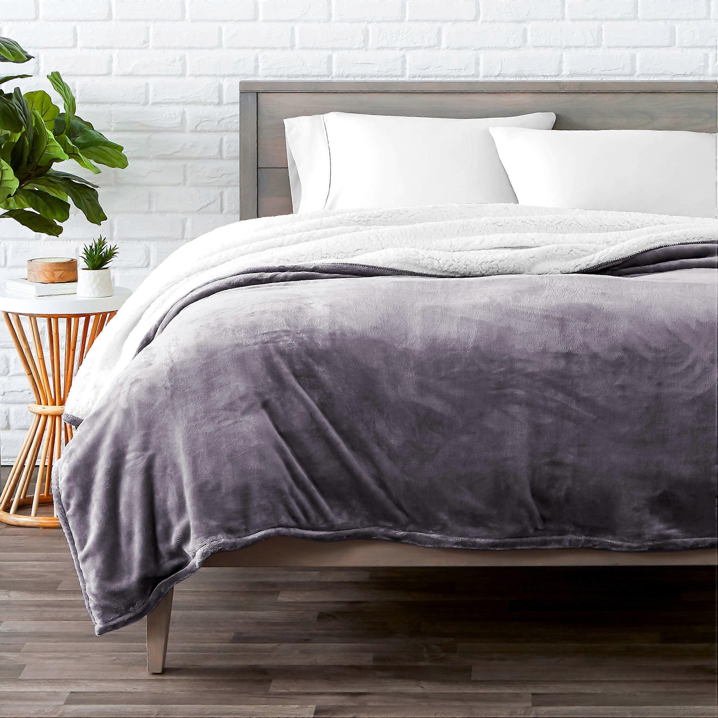 With one velvety microplush side and one fluffy sherpa fleece side, our sherpa fleece blanket is both lightweight and insulating. The fine, plush microfleece and wooly sherpa fleece are both designed with anti-pill features and will not shed. Machine washable in cold water with similar colors. Features: Plush Microfleece OEKO-TEX certified Anti-pilling and wrinkle resistant Doesn’t shed Hypoallergenic - ideal for those prone to allergies Free of harmful chemicals Machine washable, quick dry on low Dimensions: Throw/Travel: 44" x 66" Twin/Twin XL Size: 66" x 90" Full/Queen Size: 90" x 90" King/California King Size: 108" x 90" Maximum Comfort: Our carefully crafted Bare Home Sherpa Blanket is extremely soft and lush. In fact, it’s so soft, it will be hard to get out of bed in the morning. Made with our exclusive premium soft microfleece yarns, you'll want to have one for every bed, couch, and chair in your house. Lounge away with the most comfort a blanket can offer. Superior Hypoallergenic Microfleece: The skin is the largest organ in the body so treat it right with our Cozy Ultra-Soft Sherpa bed blanket. Featuring a velvety, fuzzy feel that is soft to the touch, our blanket is anti-pilling, wrinkle free, hypoallergenic, and does not shed. Perfect for those prone to allergies! Bare Natural: Rest assured knowing our carefully crafted products are made from nontoxic, hypoallergenic premium materials in a factory that is OEKO-TEX certified. We source with these high standards to ensure you are using products free of harmful chemicals making it safe to hold against your bare skin. Easy Care: Machine washable in cold water with similar colors. Dries quickly on tumble dry low. No ironing or expensive cleaning required.