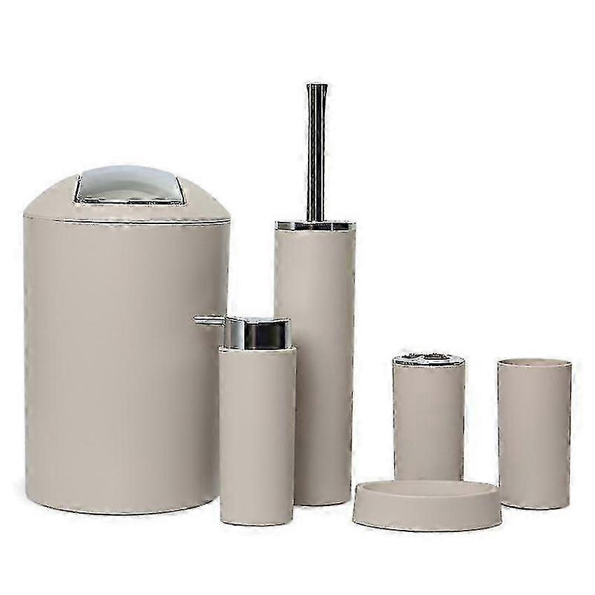 Bathroom Accessories Set 6PCS Toothbrush Holder Soap Dispenser Toilet Brush Trash Can Plastic Tumbler Cup