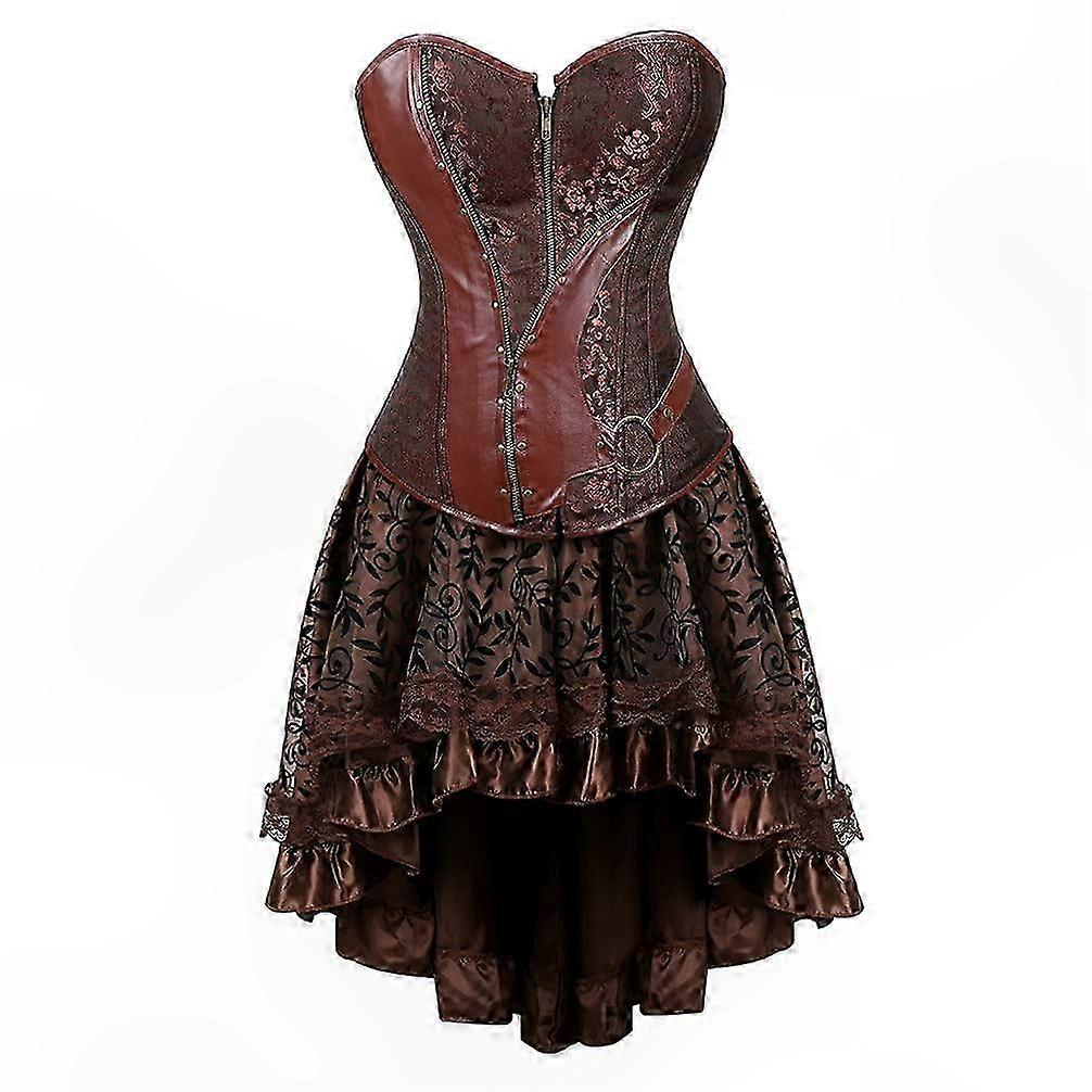 Steampunk Brown Corset with Skirt Women's Vintage Carnival Costume Size S