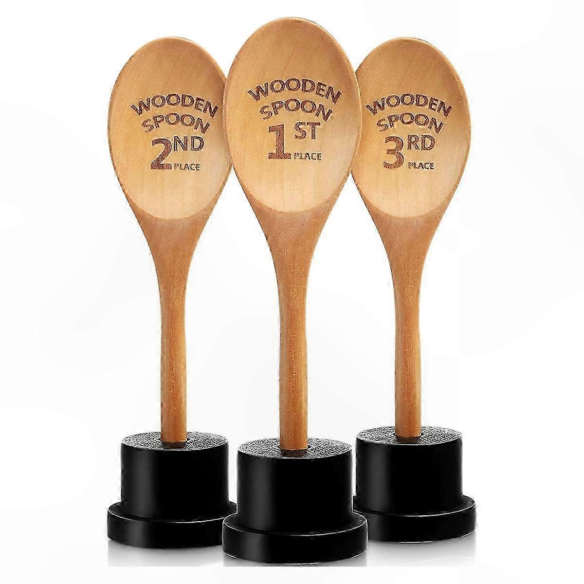 Golden Wood Spoon Trophies Set of 3 Chili Cook-Off Prizes Engraved with Base Cooking Awards Wooden Crafted Recognition Gifts
