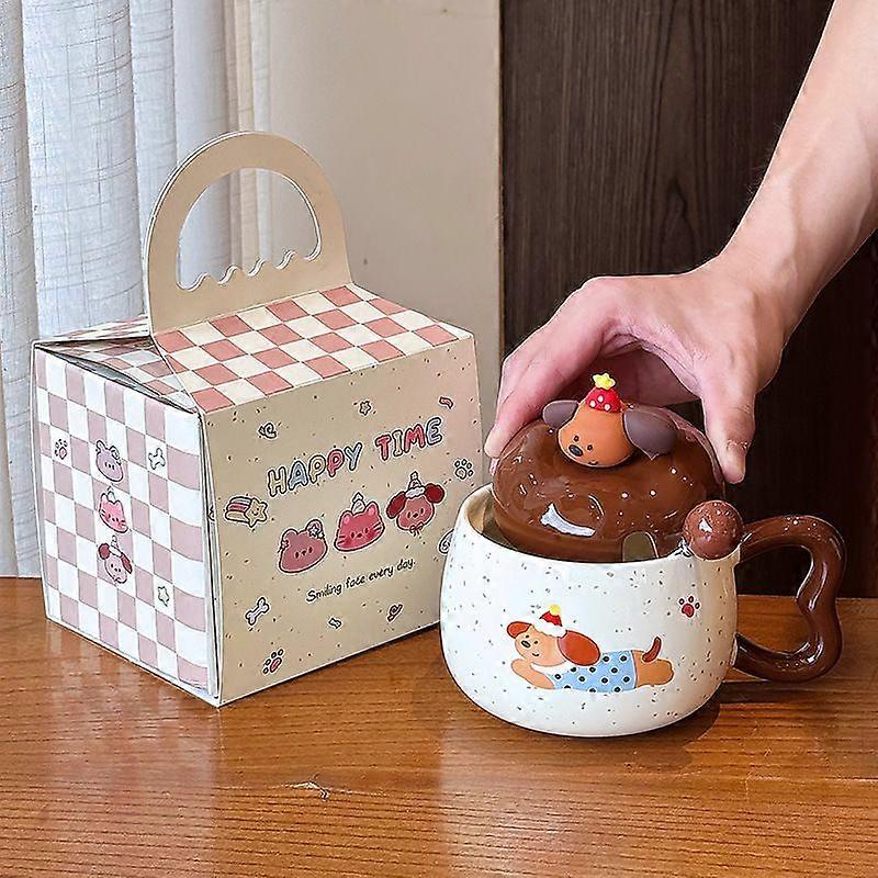 Sausage Dog Mug With Lid And Spoon, Cute Ceramic Cup For Girls, Cartoon Large Capacity Household Coffee Cup