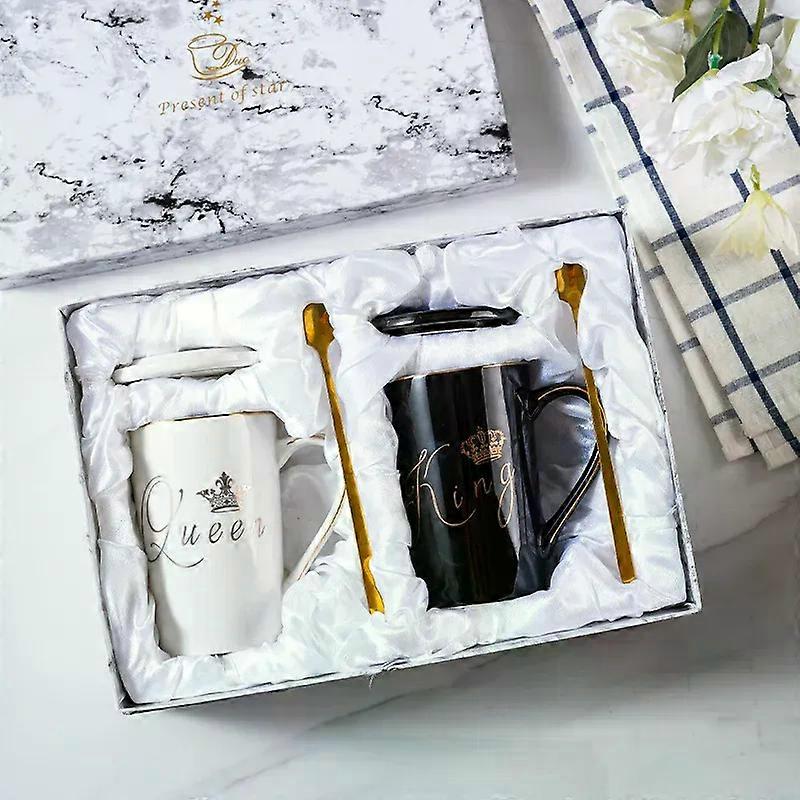 2PCS/SET Couple Cup Ceramic Mug With lid an Spoon King&queen Valentine's Day Wedding Birthday Gift