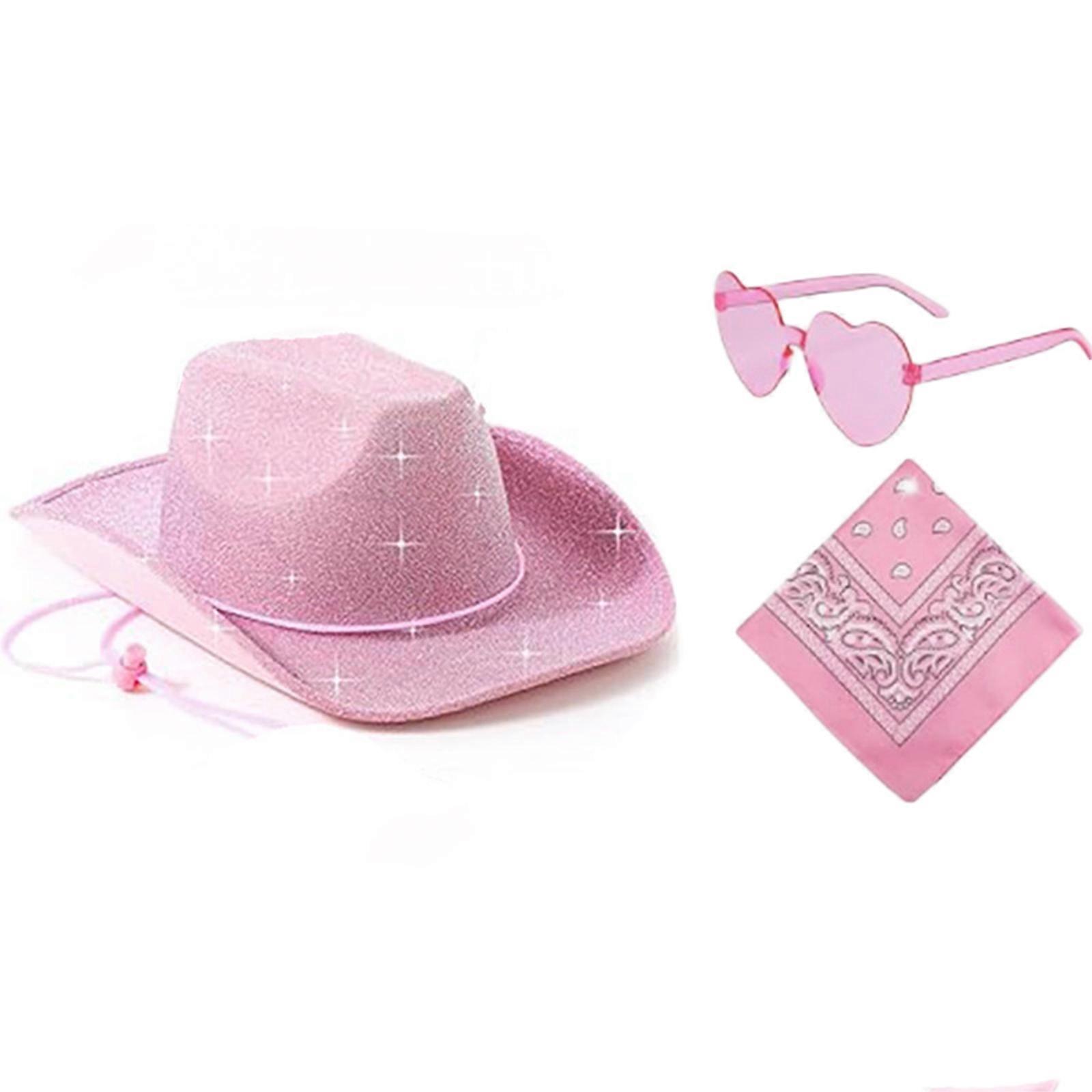 Western Cowboy Hat Eyeglasses for Bridal Shower Cowgirl Headscarf Costume Set Female Headwear Night Club Cosplay Outfit Pink