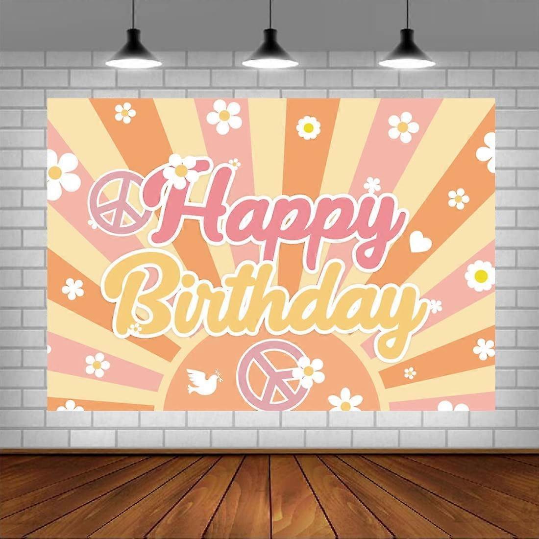 Custom Groovy Hippie Birthday Backdrop, 5x3ft Retro Boho Daisy Floral Banner for 1st Birthday, Newborn Baby Party Decor Compatible with 70s Hippie
