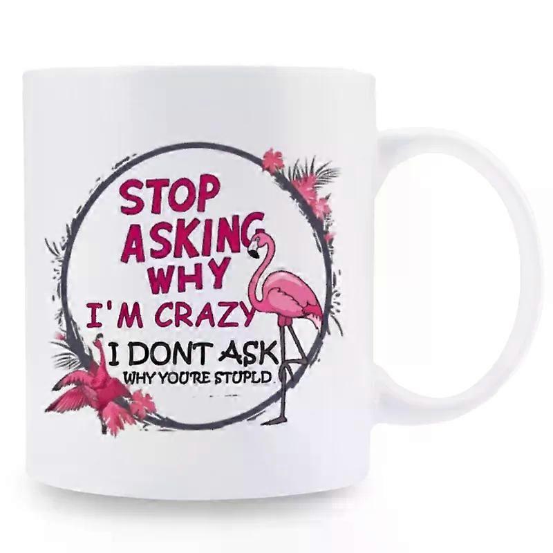 1 pc "Stop Asking Me Why I'm Crazy" Flamingo Themed 11oz Mug - Fun Ceramic Coffee Mugs