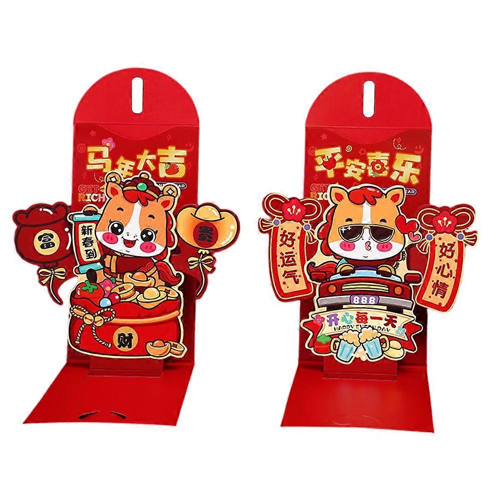 Product Description: 1. Product name: 2026 New Year red envelope 2. Product size: 8.8*16.8cm (3.46*6.61in) 3. Product style: as shown in the picture 4. Product color: as shown in the picture 5. Product material: paper Product Description: 1. Celebrate the Year of the Dragon in style with our personalized and creative red envelope bag for the 2024 Chinese New Year. 2. Made with high-quality materials, this red packet bag features a unique and innovative design, making it a standout accessory for gifting money during the Lunar New Year festivities. 3. The vibrant red color symbolizes good luck and prosperity, adding a festive touch to your celebrations. 4. The spacious and convenient size of this red envelope bag allows you to carry and distribute multiple red packets easily, making it a practical and stylish choice for the holiday season. 5. Whether you're attending family gatherings or participating in cultural events, this red envelope bag is the perfect way to own traditions and share blessings during the auspicious Year of the Dragon. The delivery includes: 2 pcs 3D New Year red envelope