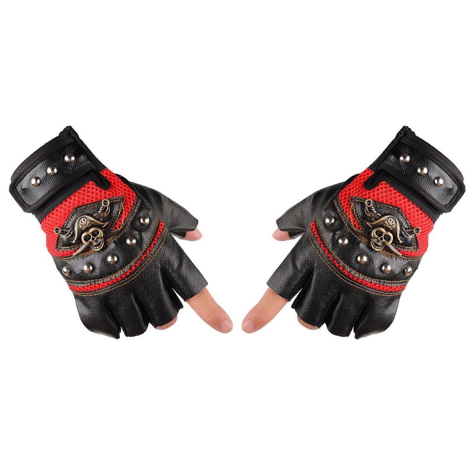 Studded Half-Finger Fingerless Driving Cycling Gloves Fall-proof Cool Skull Studded Summer Armor Hip-Hop Rock and Roll Red