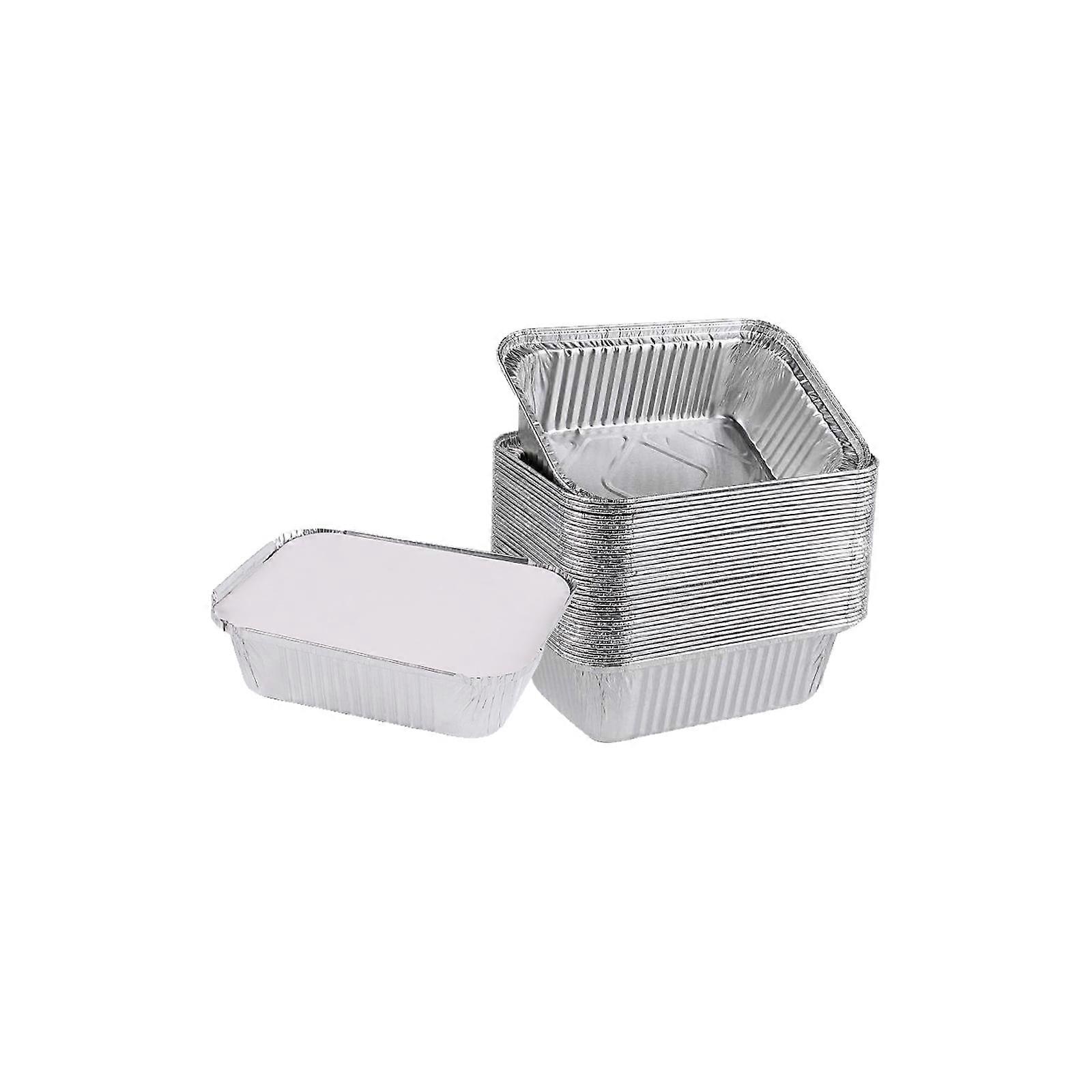 XunW 50PCS Disposable Square Tinfoil Boxes with Lid Outdoor BBQ Baking Oven Tinfoil Bowls