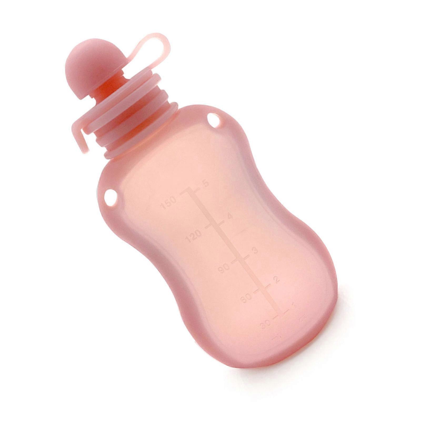 Easy Feeding and Storage Container Milk Bottle Reusable Silicone Baby Food Bag Refillable Complementary Food Pouch Pink