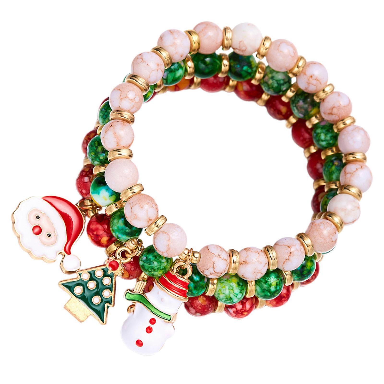 Multicolor Bead Bracelets Sets Christmas Holiday Wrist Chains Preppy Elastic Bangles Jewelry Handcrafted Ornaments Multicolor