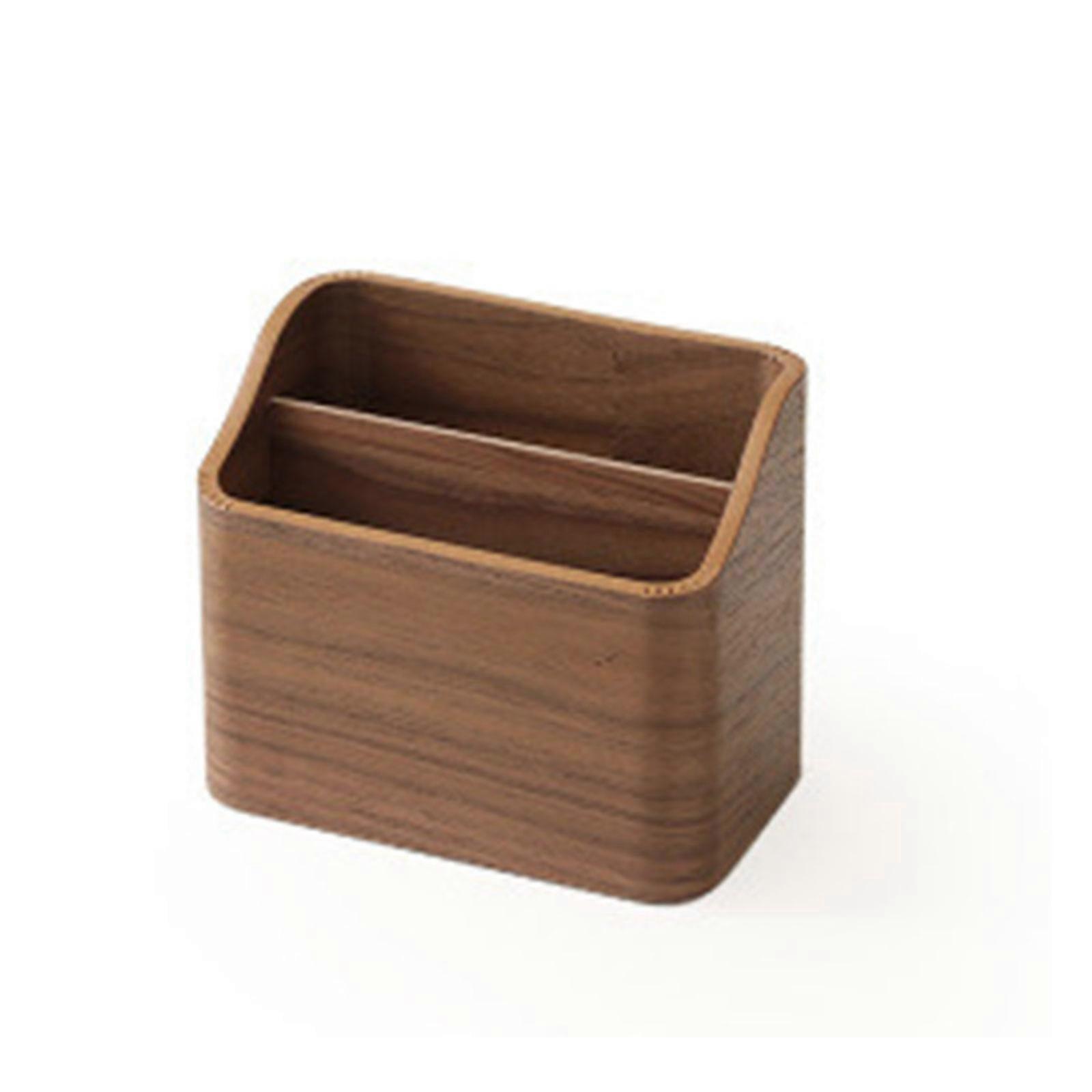 Wood Remote Control Holder Caddy Organizer Desktop Storage with 2 Compartments for TV Remotes Phones Pen Office Supplies Walnut