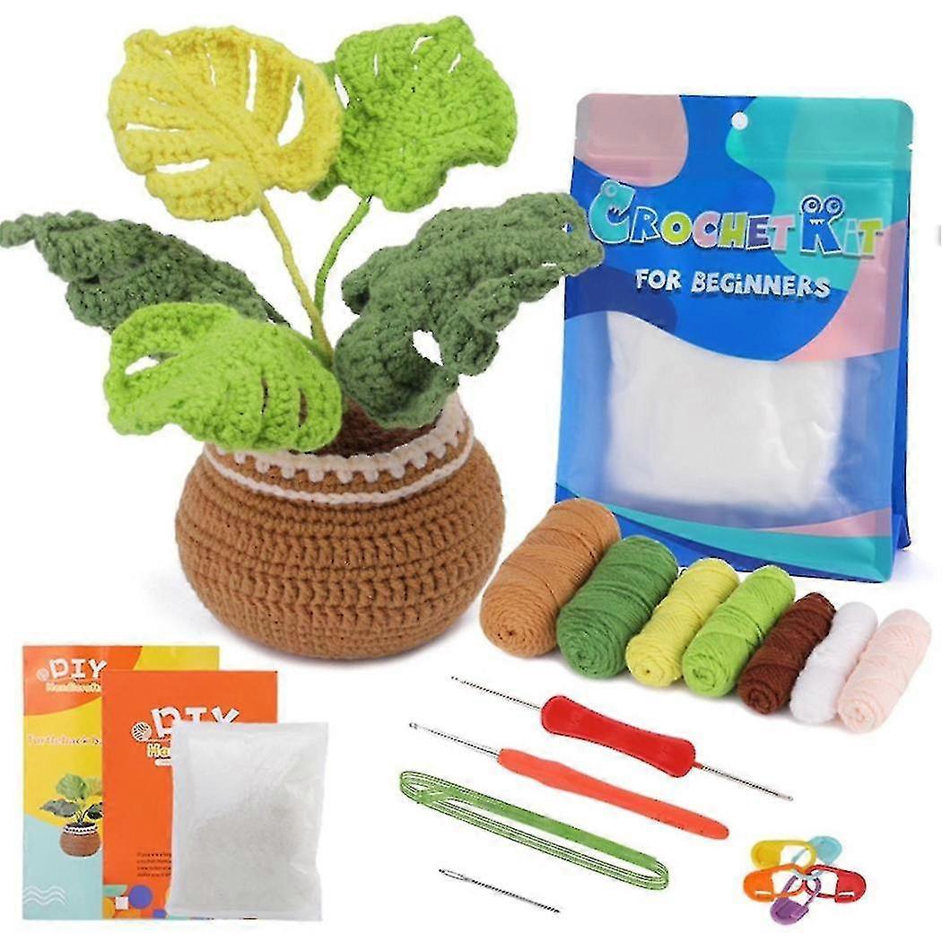 Crochet Kit DIY Monstera Deliciosa Crochet Kit With Yarn Needles Plush Doll Simple[D]