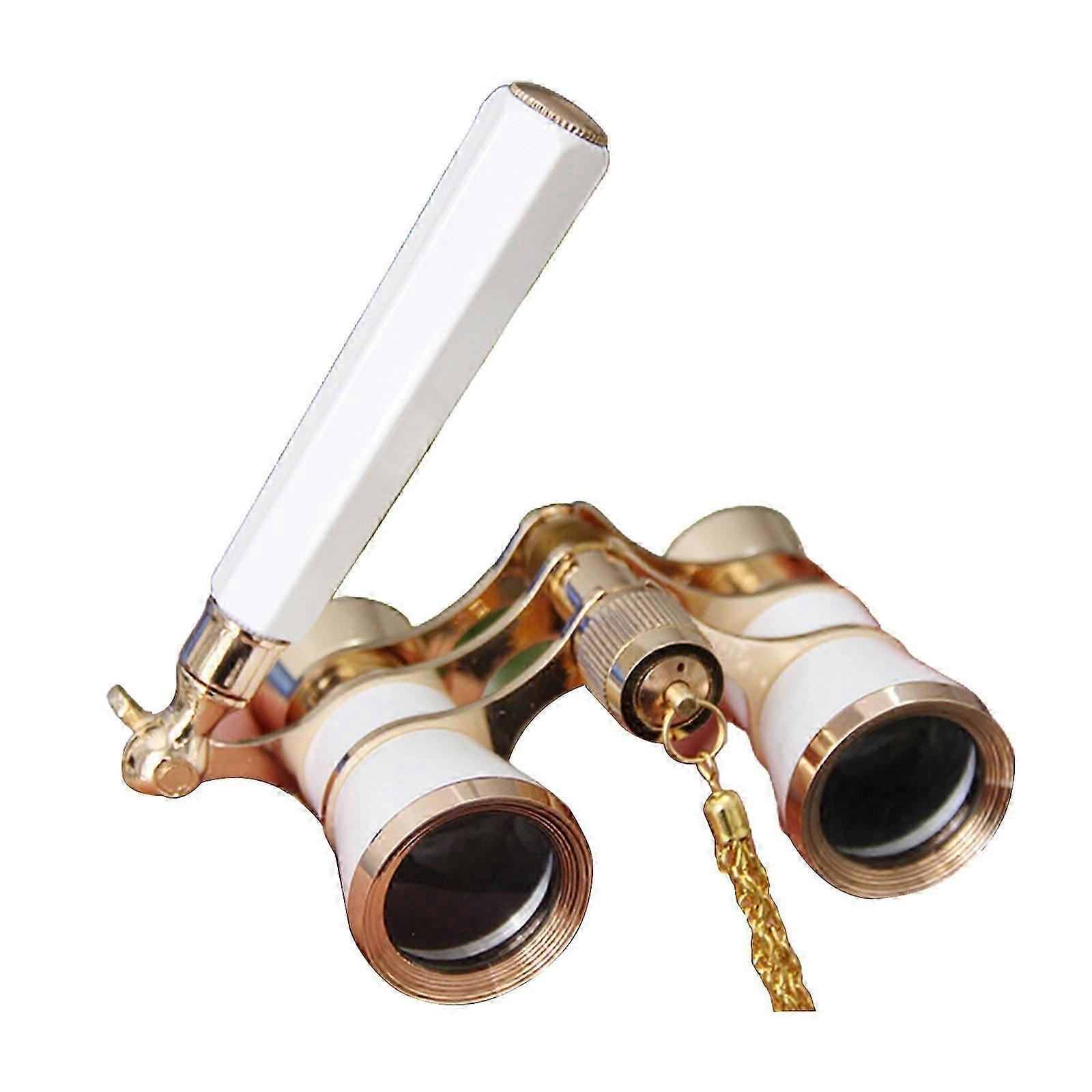 3X25 Binoculars with Chain Handle for Adults Kids Women Binoculars for Concert Theater Opera Lorgnette Theater Glasses White