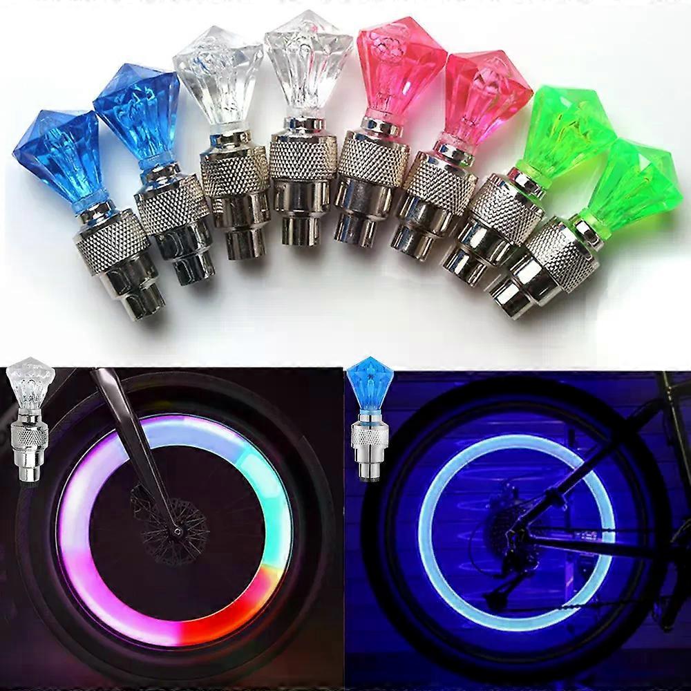 1 Pair Bicycle Lights Motion Sensor LED Lights Road MTB Bike Tire Valve Caps Wheel Spokes Light Bicycle Accessories Neon Flash PVC Tire Valve Cap Lamp High Brightness Vibration Sensing High Strength Bike Wheel Lamp Cycling Equipment Description: 1.Motion activated Led Light for Bike, Motorcycle, Car, Truck Wheels 2.Motion Activated LED lights packaged 2 in 1. Lights & Valve connectors. 3.Can be easily installed it on a wide range of vehicles such us bikes, motorbikes, cars , Truck etc. 4.The light makes the wheel amazingly beautiful and announces your presence for safety at night. 5.Please do not forget to remove battery guard square in order to activate battery Specifications: Color(Color LED), Blue (Blue LED), Green (Green LED), Red (Red LED), Build Material : PVC Aluminum Battery used: 3 * LR1130 batteries Included Length: 6.1 / 2.5" Diameter: 2.5 cm / 1.25" Package Included: 2*Wheel Tire Light(with Batteries) Attention buyers: 1. When you receive the baby for the first time, you must unscrew the back cover and remove the insulation sheet in the middle of the battery or the middle of the battery and the spring, otherwise it is a short circuit phenomenon and will not light! 2. In the first link, pay attention to the battery anyway, don't install it backwards!! 3. This lamp has a condition that it is induced by vibration, and it will shine when there is vibration.Under relatively static conditions. _x000D_