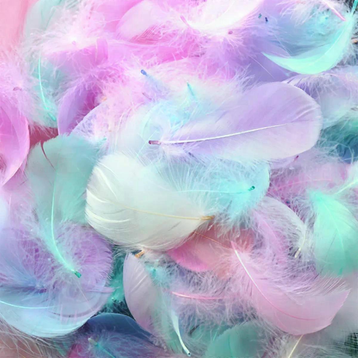 100pcs -Makaron Color Small Feather Refill Gift Box Filling Supplies DIY Wedding Birthday Party Christmas Decoration Materials Features: 1. Feathers are natural and in good quality, colorful feathers are natural feathers that do not fade. 2. Beautiful feathers can be used in various DIY craft projects, such as dream catcher, hair accessories, birthday party, feather masks, etc. 3. Perfect for home decoration, accessories for all kinds of clothing, shoes, hats, bags, headdresses, costume, earrings. 4. Natural feathers, each feather was by the sterilization process, safe and non-toxic, bright color and not fade. 5. Each feather is a pattern of printing. This type of is permanent and scratch-resistant. _x000D_