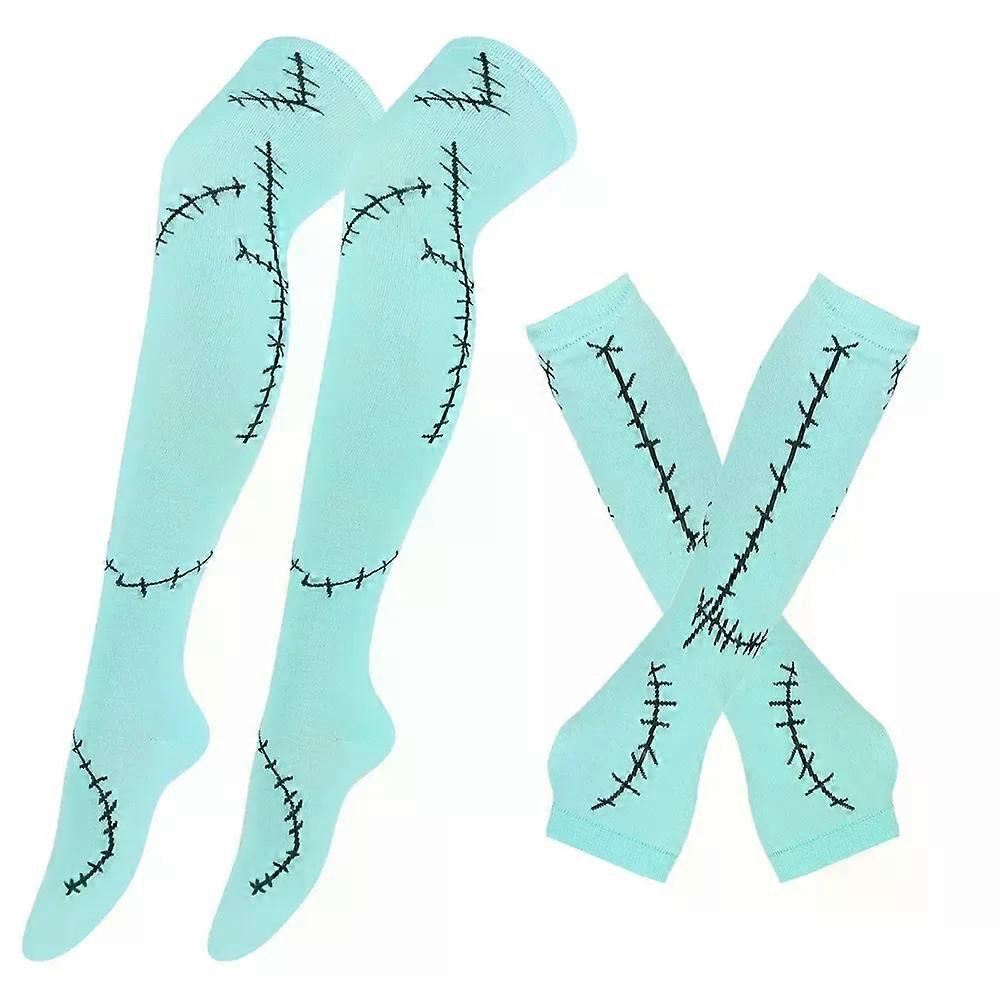 Womens Sally Thigh High Stockings mittens Arm Sleeve Gloves Set Ladies Black White Long Over Above Knee Socks Lolita Halloween