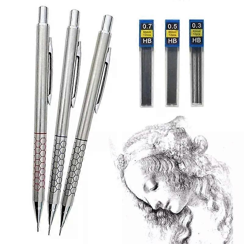 05 07 09mm Metal Mechanical Pencil with Eraser Set HB Lead Art Sketch Drawing Supplies Automatic Pencil Writing Stationery