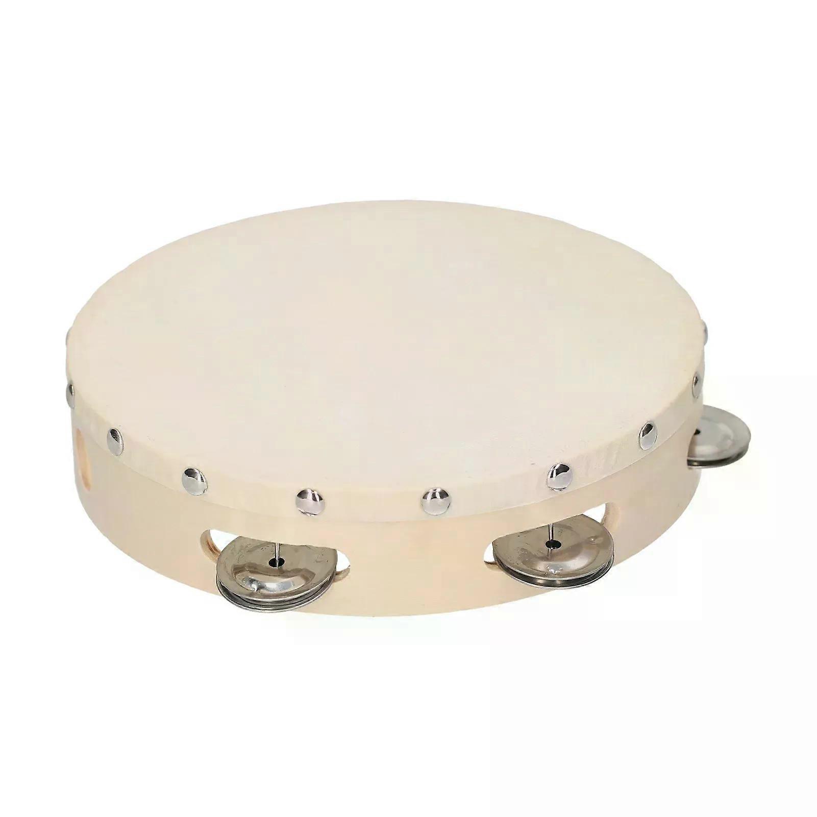 4/6/8 Inch Hand Tambourine with Single Row Jingles Sheepskin Drum Skin Wooden Tambourines Entertainment Musical Timbrel for Kids
