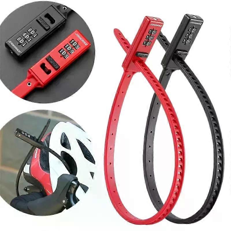 3 Digit Password Bike Helmet Lock Multipurpose Anti-Theft Stainless Steel Cable Tie Ultralight Portable MTB Road Scooter Multipurpose Use : This lock can be used for various purposes, including bicycles, electric scooters, and motorcycles. Anti-Theft Feature : The three-digit password tie lock provides an anti-theft feature that ensures your belongings are safe and secure. Portable Design : The portable design of this lock makes it easy to carry around, ensuring that you can secure your bike or scooter wherever you go. Durable Material : Made of steel, this lock is durable and can withstand wear and tear, ensuring that it will last for a long time. Product detail Name: Combination cable tie lock Material: Nylon + Stainless Steel + zinc alloy Length: About 56cm (with a lock) Applicable: Road bike. Mountain bike. Folding bike Product feature Adjustable cable ties Built-in stainless steel bars strong and sturdy One-touch unlock Zinc alloy lock Password unlock Note: Due to lighting issues, there may be slight differences between the actual color and description. _x000D_