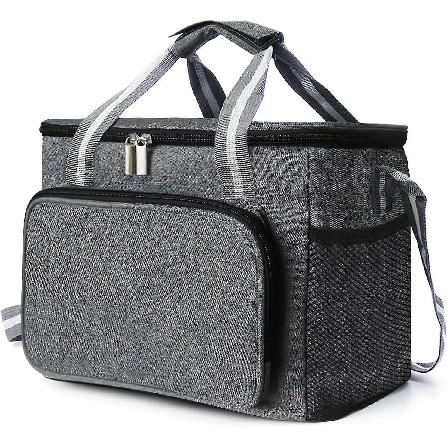 15L Thermal Food Bag, Lunch Bag, Work Lunch Bag, Small Portable Cooler for Camping, Beach, Office, School, Gray